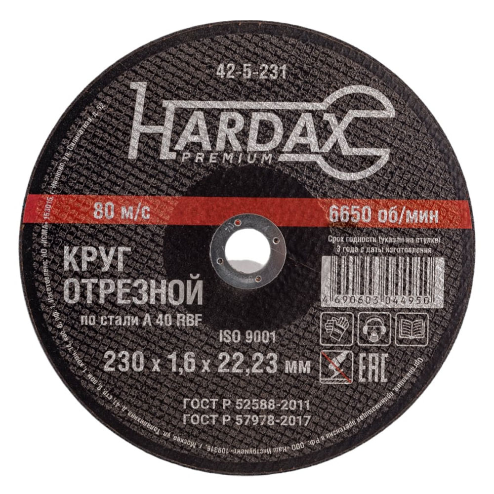Круг отрезной 230 х 1,6 х 22 по металлу HARDAX