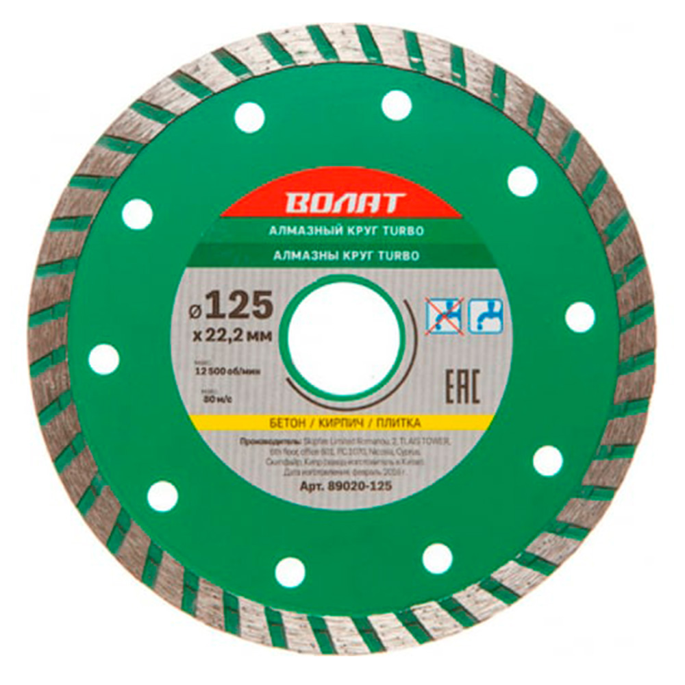Круг отрезной алмазный 125 х 22 сегм. сухая резка турбо ВОЛАТ