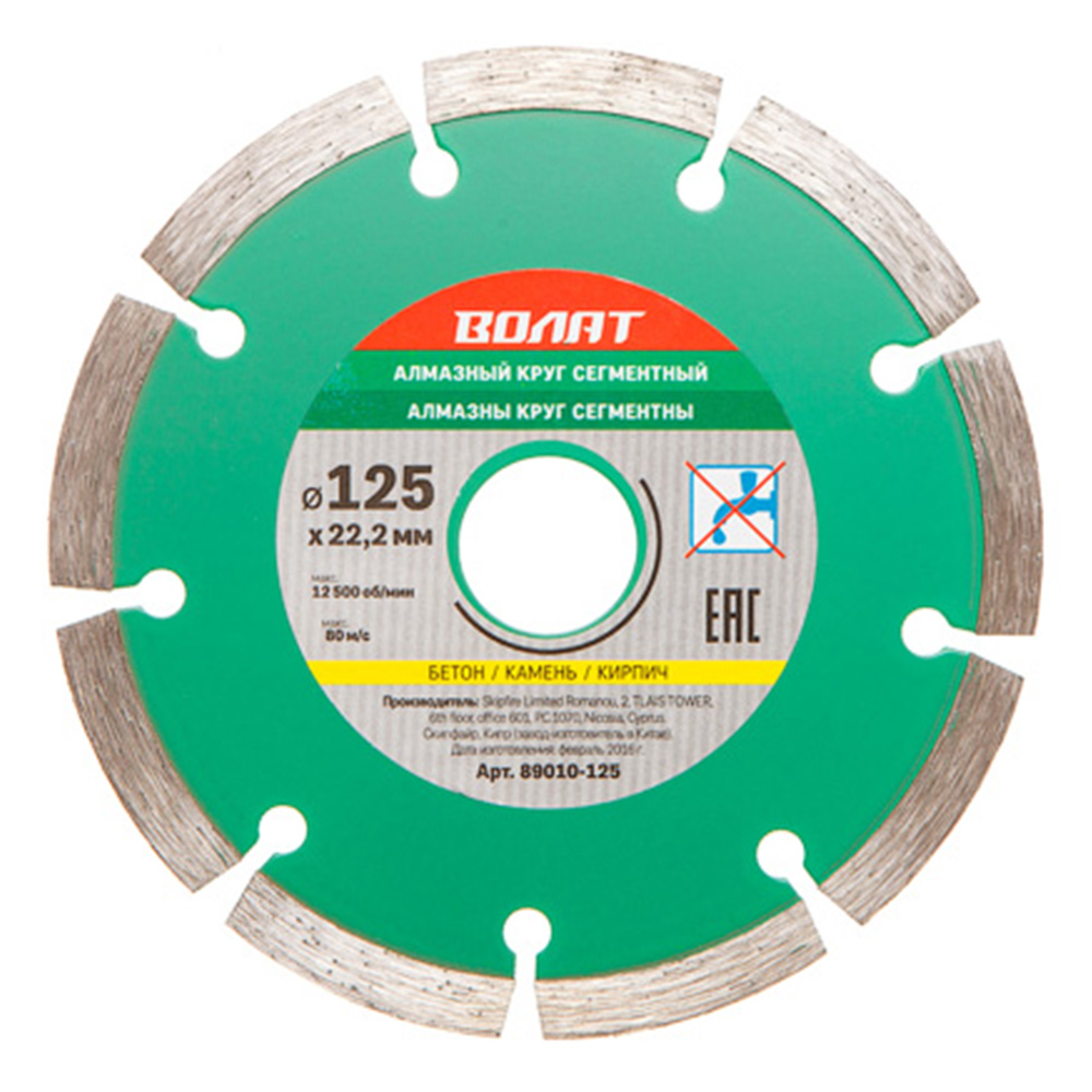 Круг отрезной алмазный 125 х 22 сегм. сухая резка ВОЛАТ