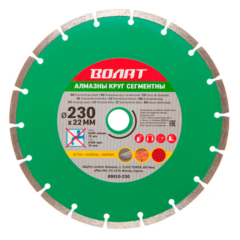Круг отрезной алмазный 230 х 22 сегм. сухая резка ВОЛАТ