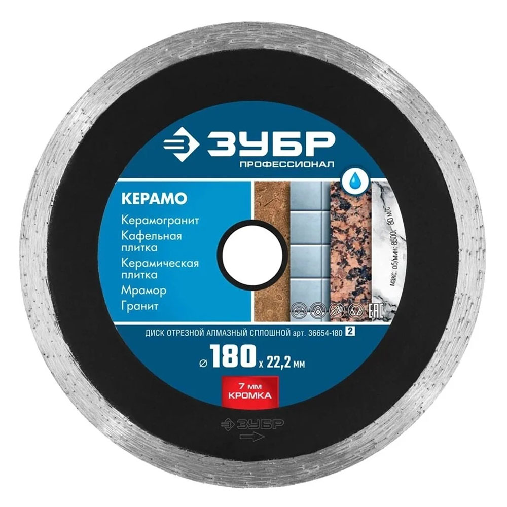 Применяется для резки с обязательным водяным охлаждением керамической плитки, керамогранита, мрамора и других строительных материалов.