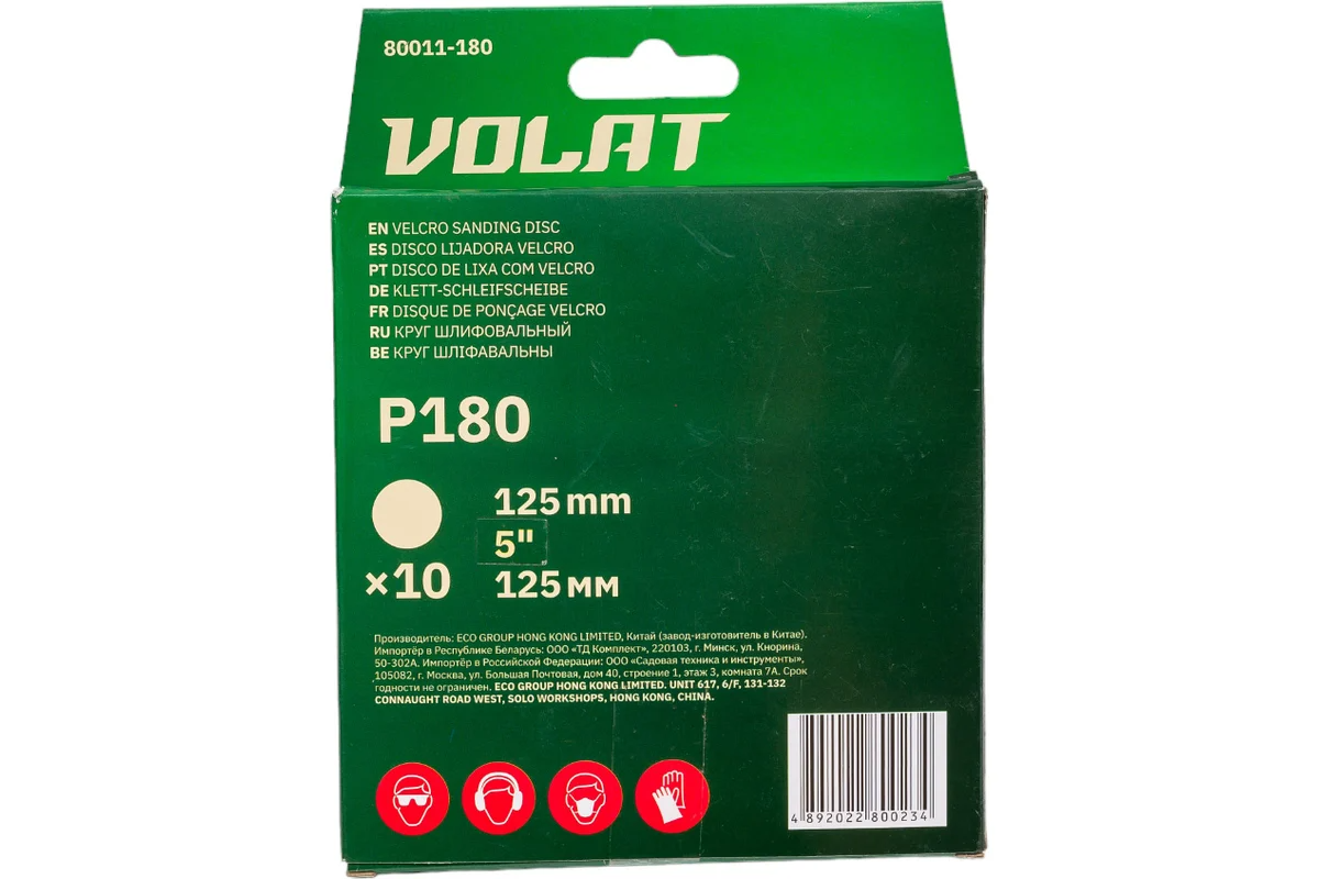Круг абразивный под липучку 125мм, № 180 ВОЛАТ (уп.10шт)