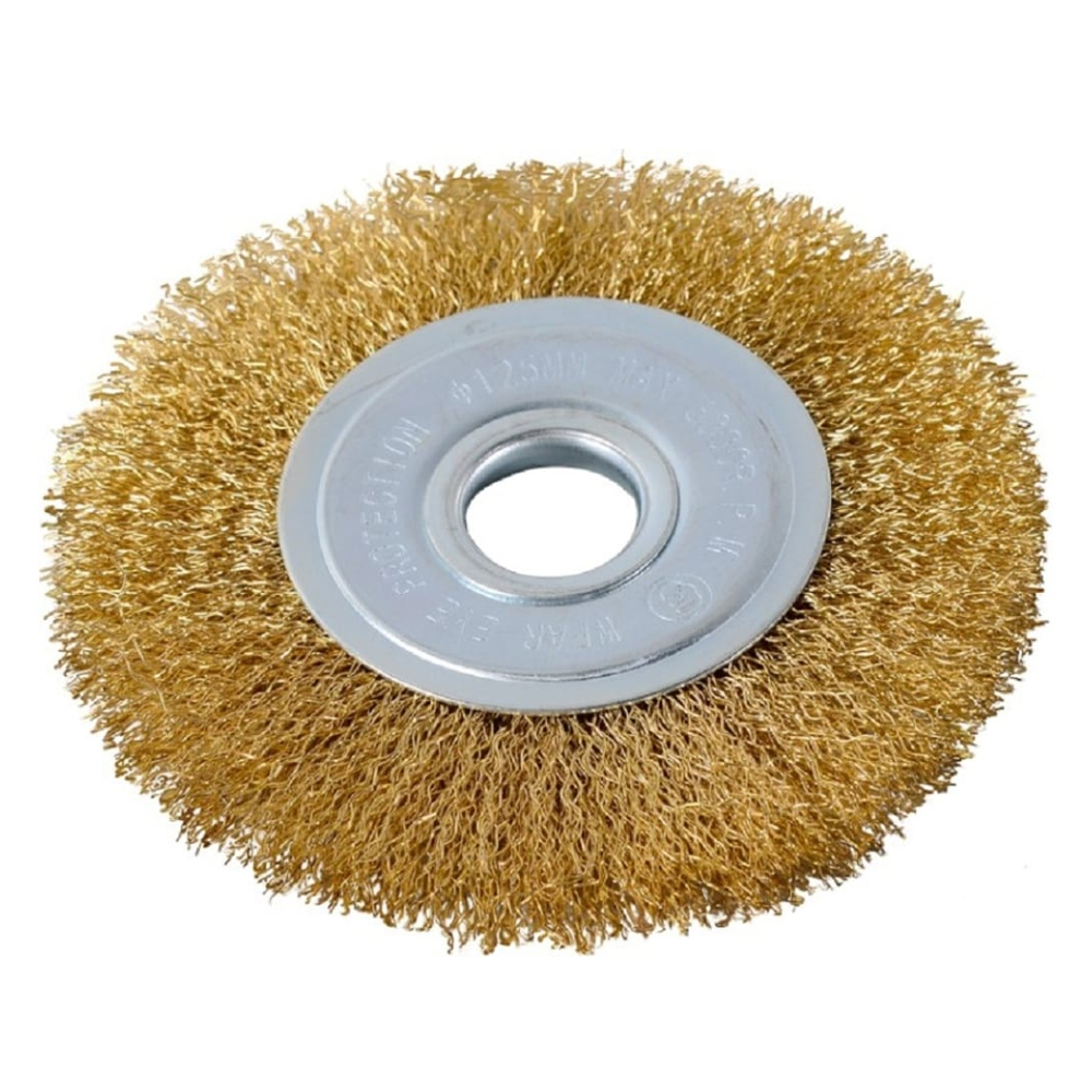 Щётка для УШМ Вихрь плоская, латунированная, 125 мм – это сменная насадка для шлифовальной обработки поверхности.