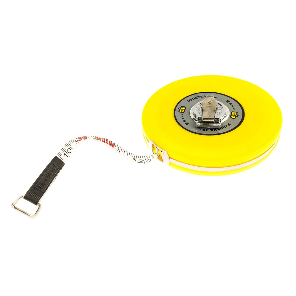 Рулетка Фиберглассовая производится в специальном открытом корпусе. Основа рулетки – это ее измерительная лента, которая изготавливается из фибергласса. Также рулетка оснащена надежным пластмассовым сердечником, и специальным металлическим кольцом, который применяется для натягивания ленты, а также для произведения измерений с отвесом. Лента является прочной и устойчивой к деформациям.