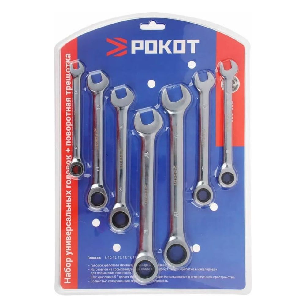 Набор ключей комбинированных с трещоткой 7шт РОКОТ
