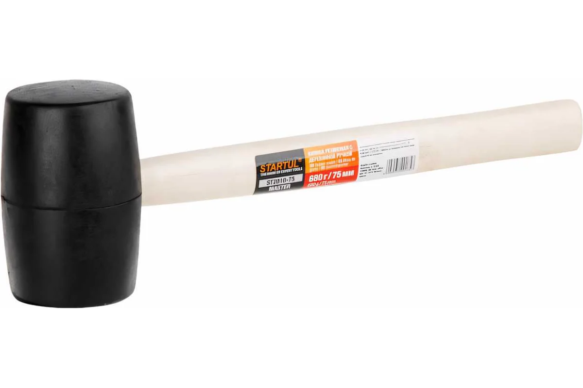 Резиновая киянка STARTUL Master 0,68 кг ST2010-75 применяется для монтажных и строительных работ, укладки тротуарной плитки. Головка киянки цилиндрической формы изготовлена из технической резины черного цвета, для удобства работы боек киянки изготовлен выпуклым. Рукоять выполнена из лиственной древесины твердых пород, тщательно отшлифована и обработана защитно-декоративным покрытием для придания надежности и долговечности инструменту. Крепление головки к рукояти осуществляется в распор с добавлением эпоксидного клея для улучшения прочности соединения.