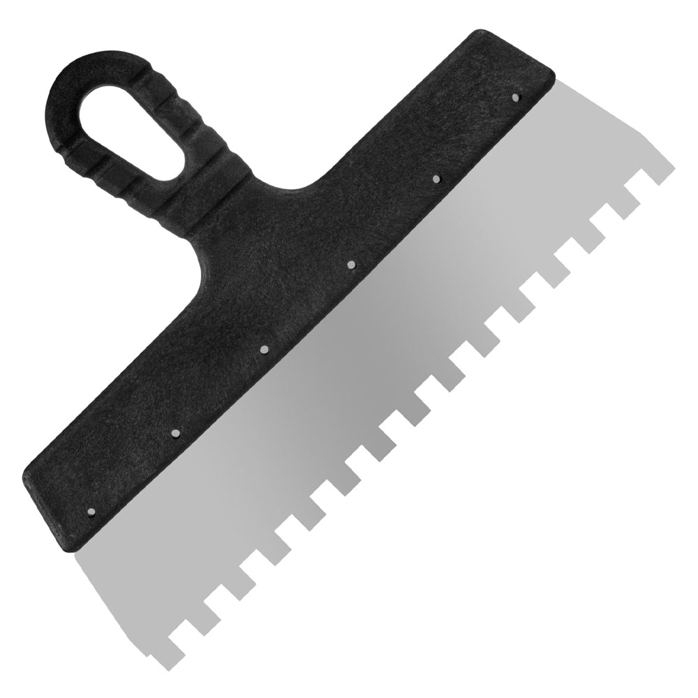Зубчатый фасадный шпатель РемоКолор Мастер 12-9-300 предназначен для нанесения клеевых составов, цементных монтажных смесей при укладывании кафельной плитки, приклеивании стеновых панелей. Полотно с зубьями 10х10 мм подойдет для облицовки стен крупными плитами. Прочное полотно шириной 300 мм из нержавеющей стали, позволяет наносить раствор с большой вязкостью. Рукоятка выполнена из пластика и имеет эргономическую форму, что обеспечивает удобство при работе.