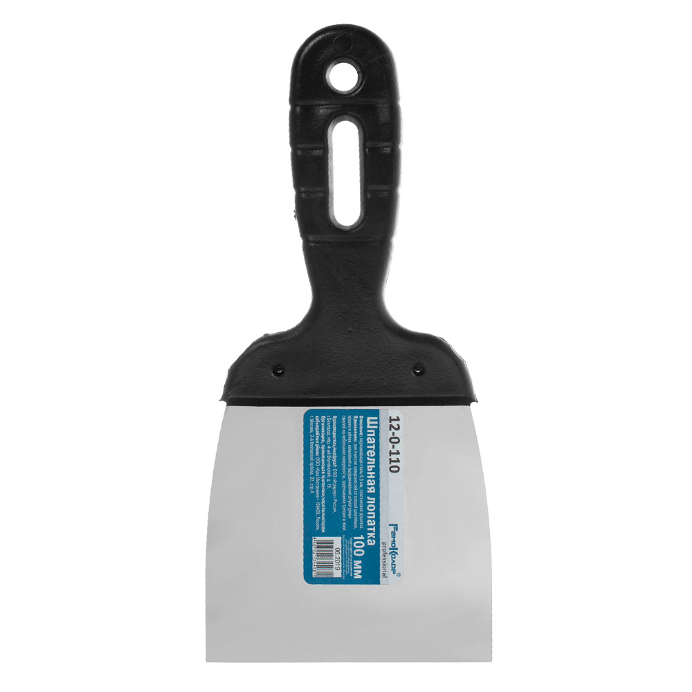 Полотно шпателя, изготовленное из легированной стали, характеризуется жесткостью и прочностью.