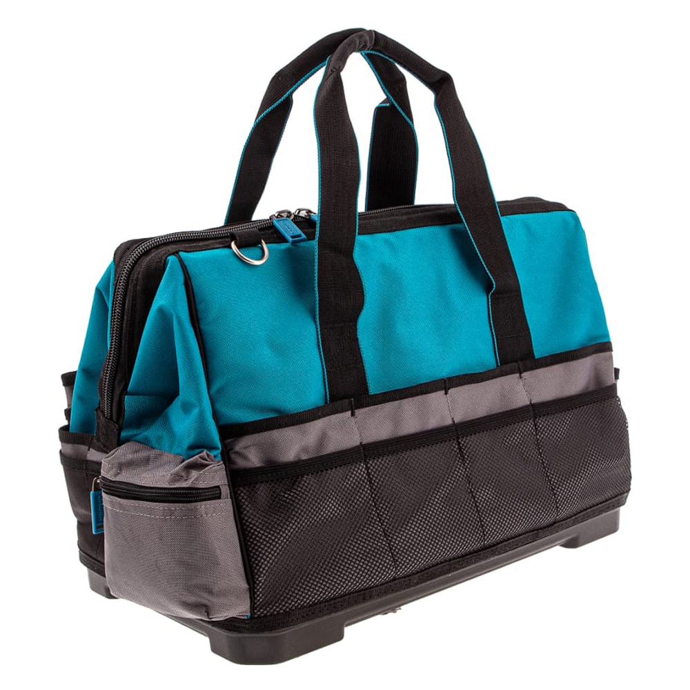 Сумка для инструмента с габаритами 475 х 260 х 360 мм, с 42 карманами, пластиковым дном и наплечным ремнем.