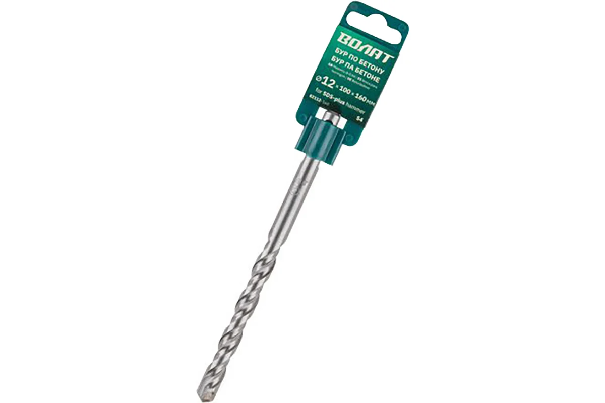 Бур сверло SDS-plus S4 12x100x160 мм ВОЛАТ 82112-160 используется в перфораторах с типом крепления SDS-plus для сверления отверстий в бетоне, кирпичной кладке, камне, граните.