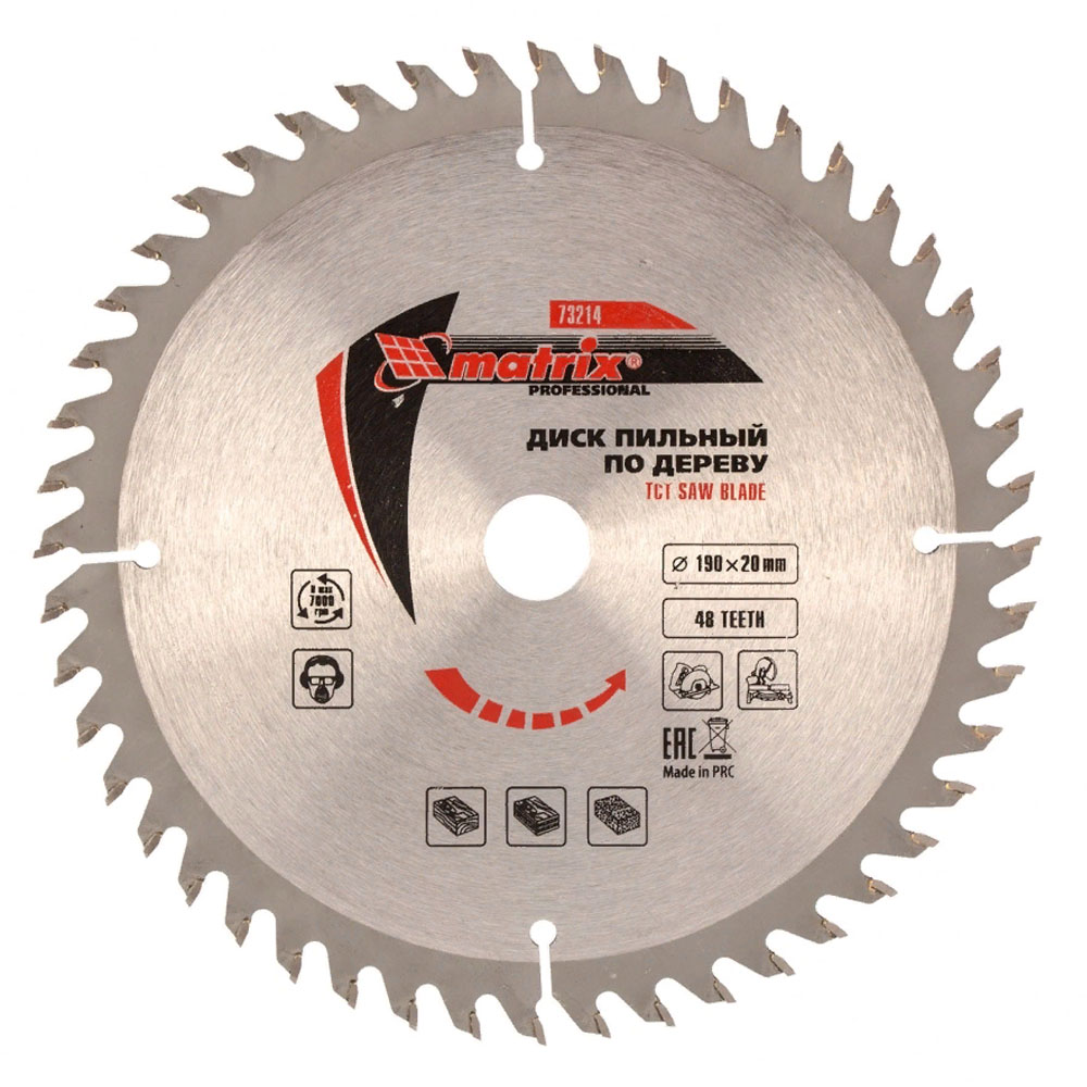 Пильный диск по дереву Matrix ф190 х 20 мм с 48 зубьями применяется в качестве оснастки на циркулярных и торцовочных пилах с соответствующим внутренним и внешним диаметром.