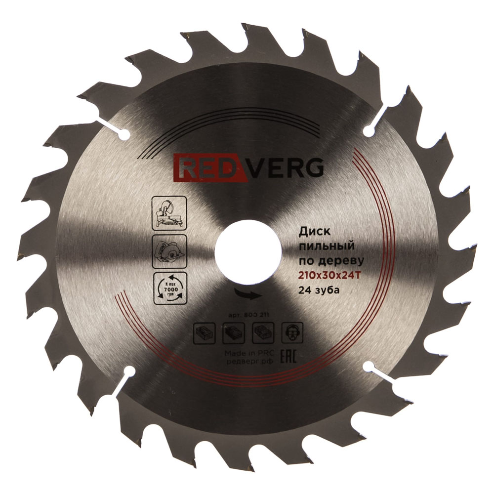 Диск пильный по дереву RedVerg твердосплавный 210х30/20/16 мм, 24 зуба (800211). Макс. 7000 об/мин.