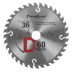 Диск пильный по дереву 160х20/16мм (36зуб) РемоКолор Проф