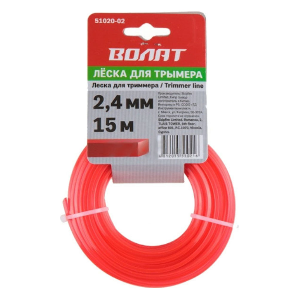 Леска для триммера 2,4мм, 15м (квадрат) ВОЛАТ