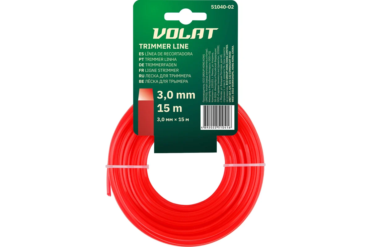 Леска для триммера 3,0мм, 15м (квадрат) ВОЛАТ