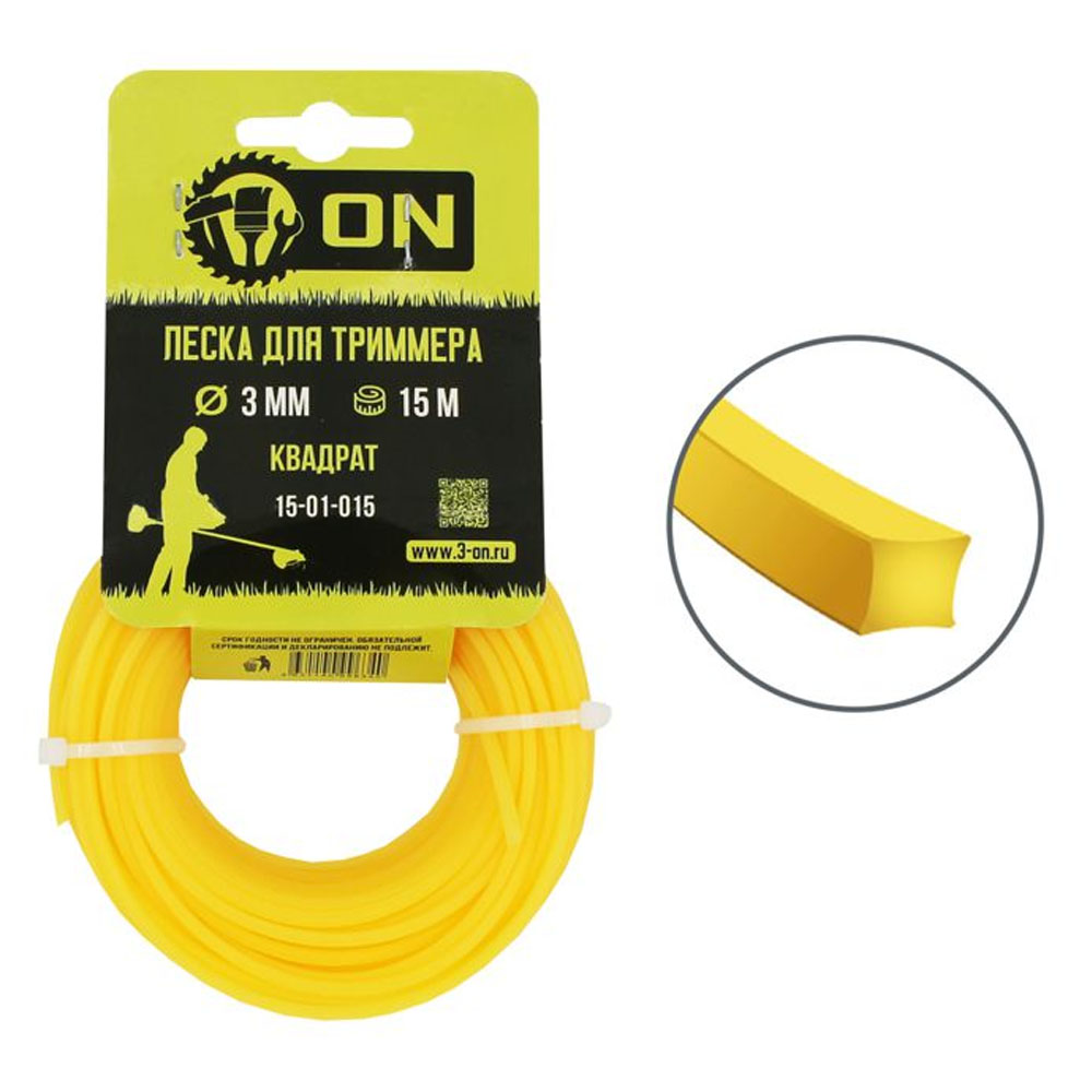 Леска для триммера 3,0мм, 15м (квадрат) 3-ON