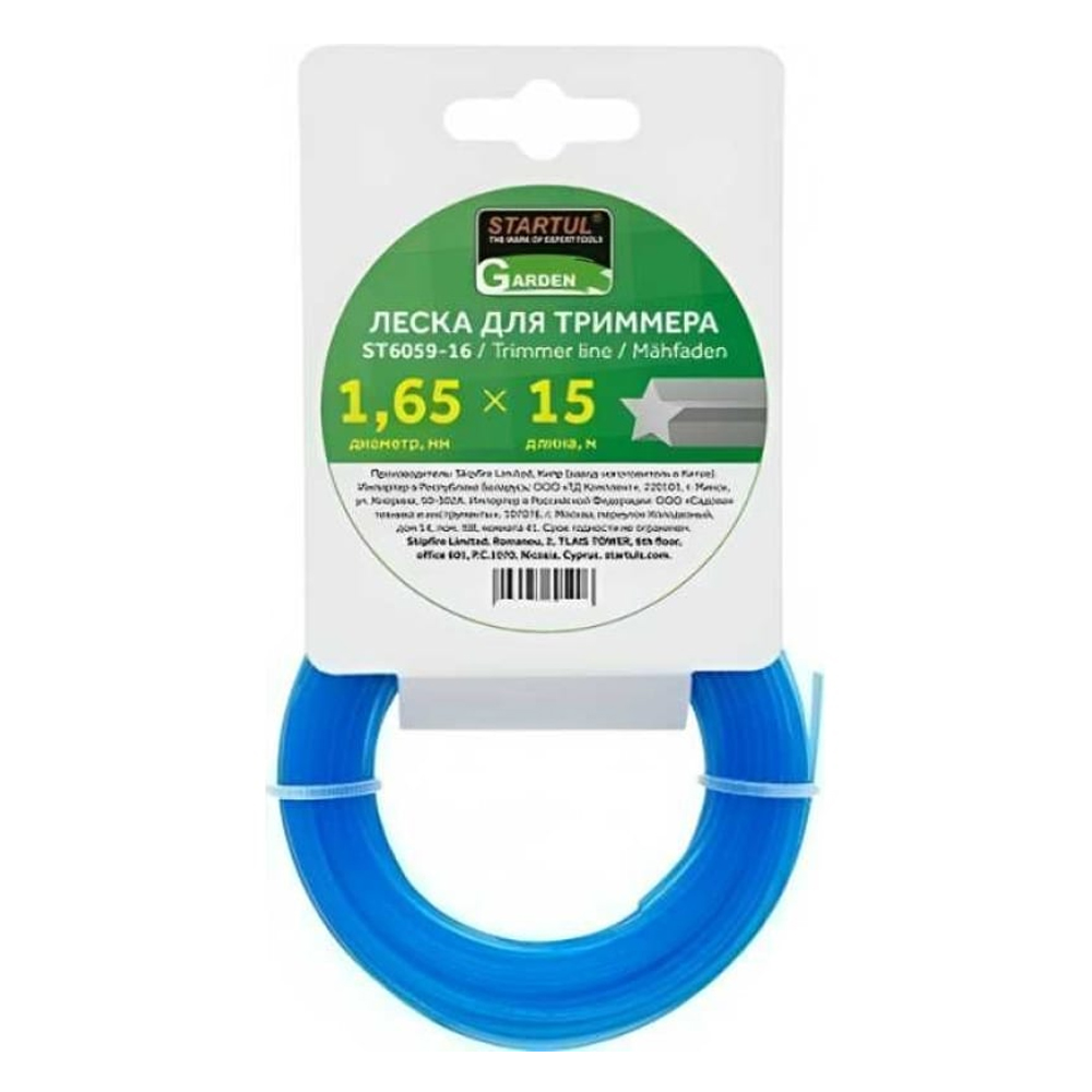 Леска для триммера 1,65мм, 15м (звезда) STARTUL