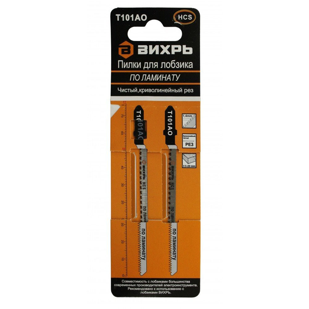 Полотно для эл/лобзика ВИХРЬ T101АО ламинат,чистый, криволинейный рез (2шт)