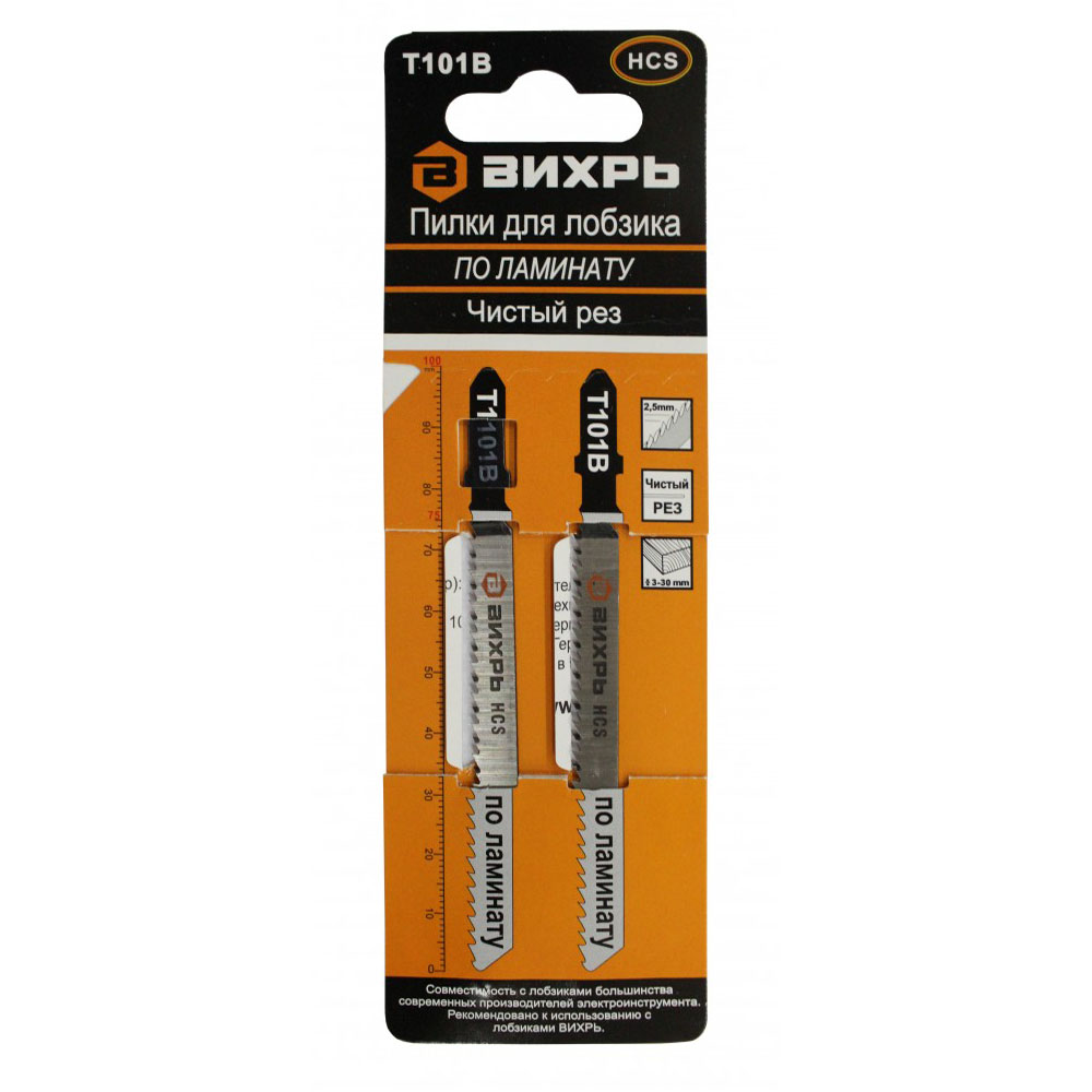 Полотно для эл/лобзика ВИХРЬ T101В ламинат, чистый рез 100х75мм (2шт)