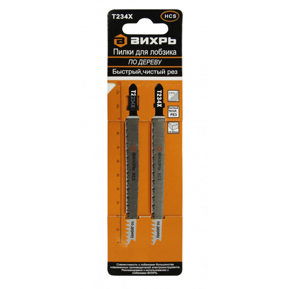 Полотно для эл/лобзика ВИХРЬ T234Х по дереву, быстрый, чистый рез 100х75мм (2шт)