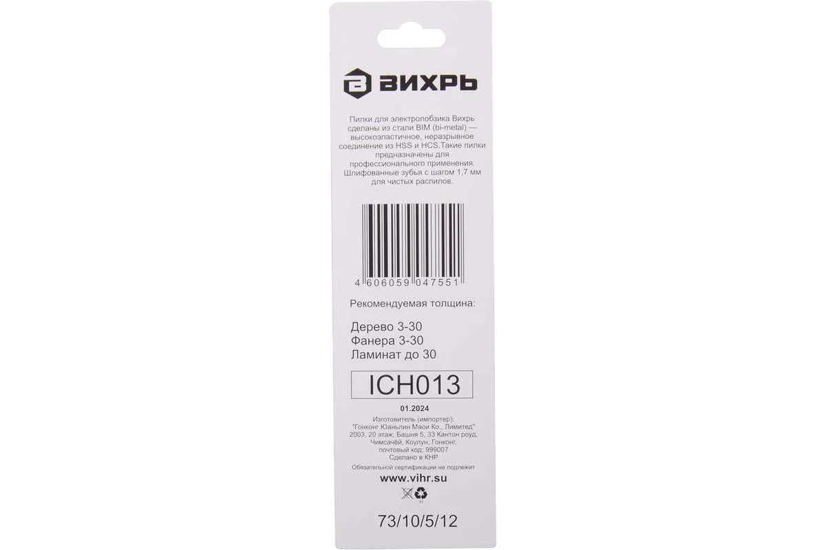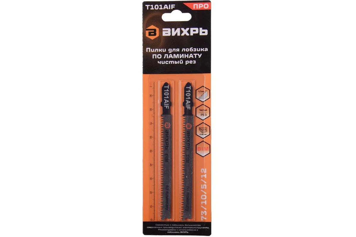 Полотно для эл/лобзика ВИХРЬ T101AIF ламинат, чистый рез 100х75мм (2шт)