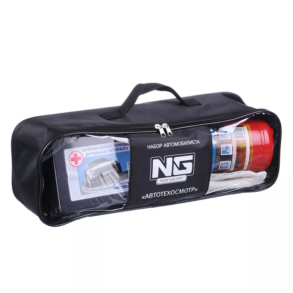 В набор входят: аптечка первой помощи, огнетушитель, буксировочный трос, знак аварийной остановки, перчатки и сумка-чехол.