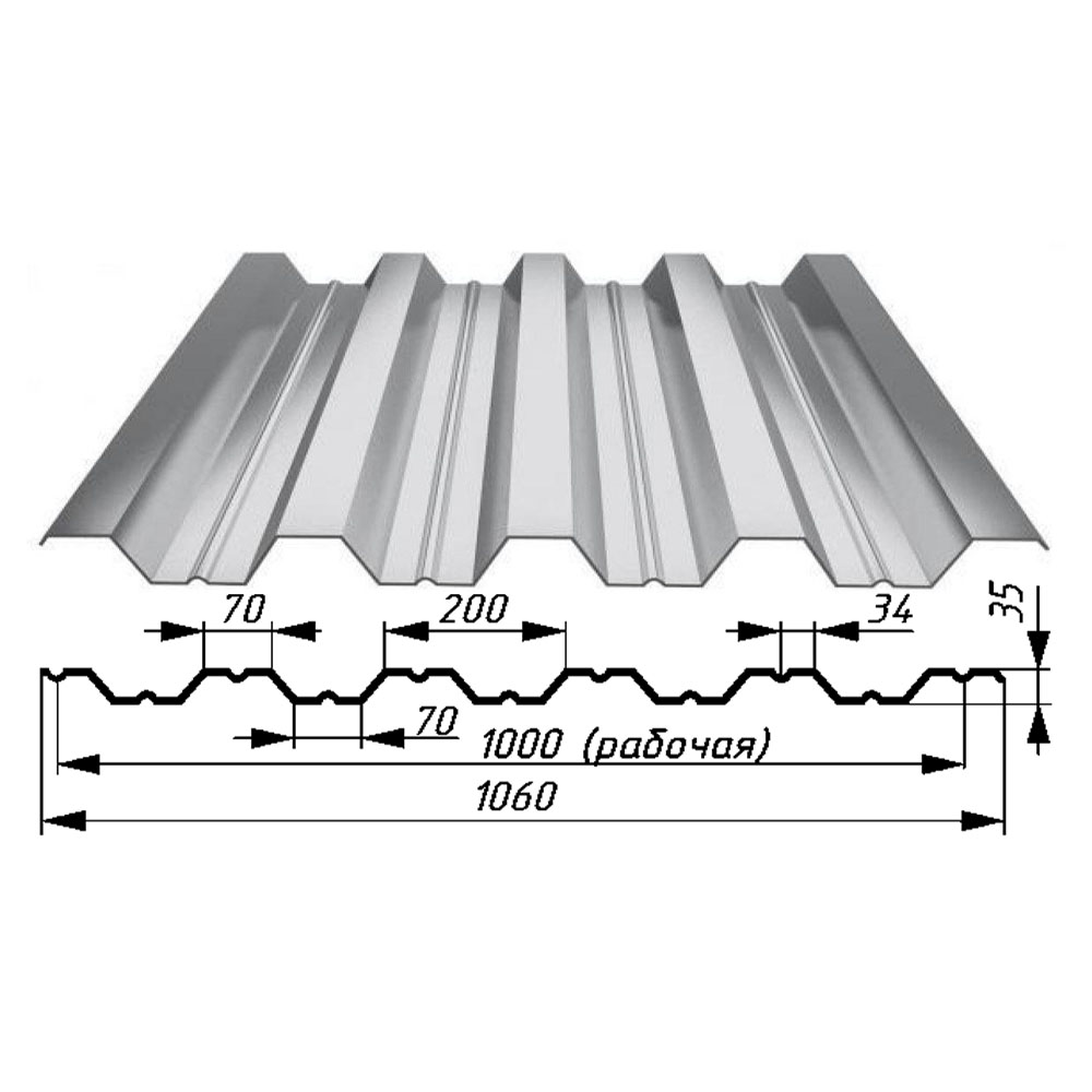Профнастил 35 оцинк 0,45х1060х6000мм