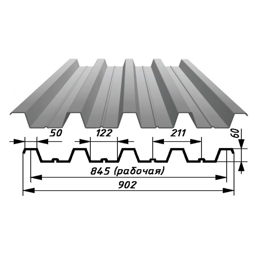 Профнастил 60 оцинк 0,70х902мм
