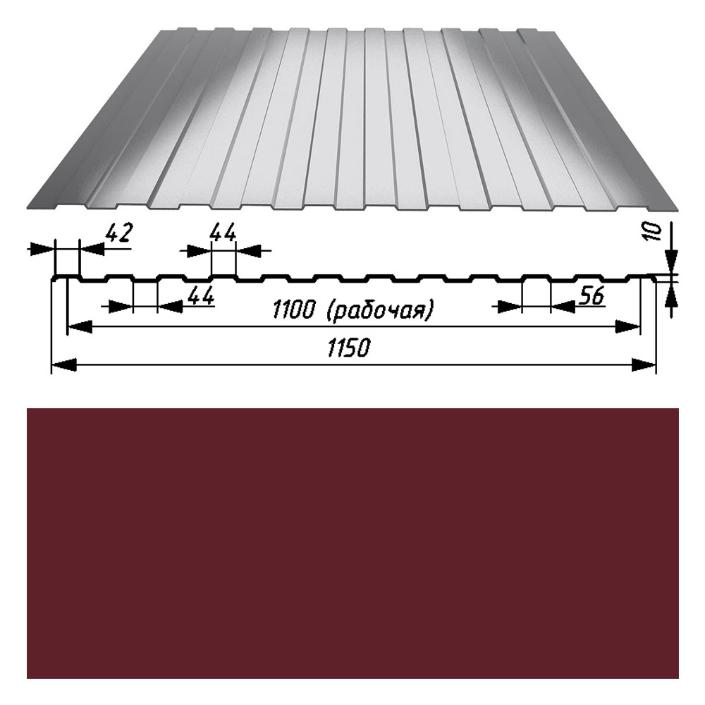 Профнастил 10 оцинк 0,50х1150мм RAL 3005 (красное вино)