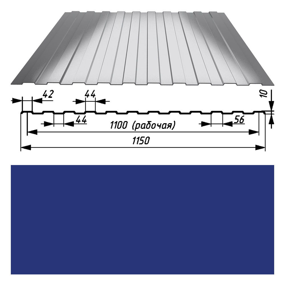 Профнастил 10 оцинк 0,45х1150х2000мм RAL 5002 (ультрамарин)