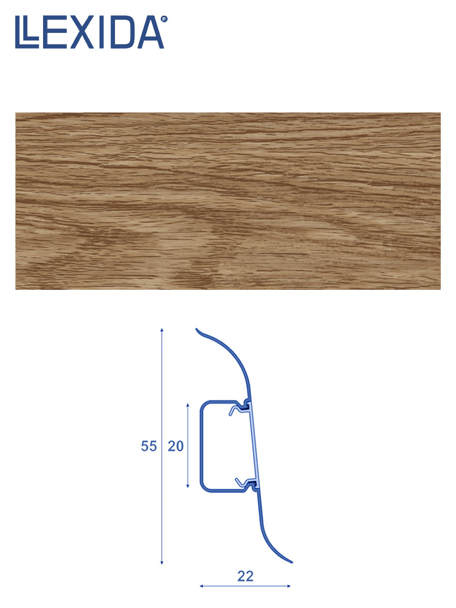 Классическая, проверенная годами S-образной формы, высотой 55 мм. Плинтус Lexida может скрыть неровности между напольным покрытием и стеной,