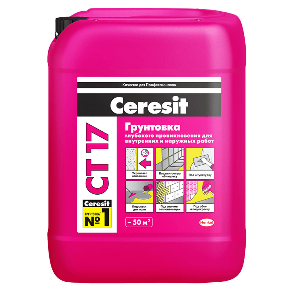 Грунтовка CT 17 предназначена для обработки поверхностей перед нанесением штукатурных и напольных смесей, плиточных клеев и т.д.