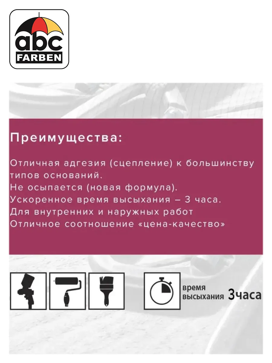 Расход: 250-300 г/м² на однослойное покрытие в зависимости от пористости грунтуемой поверхности