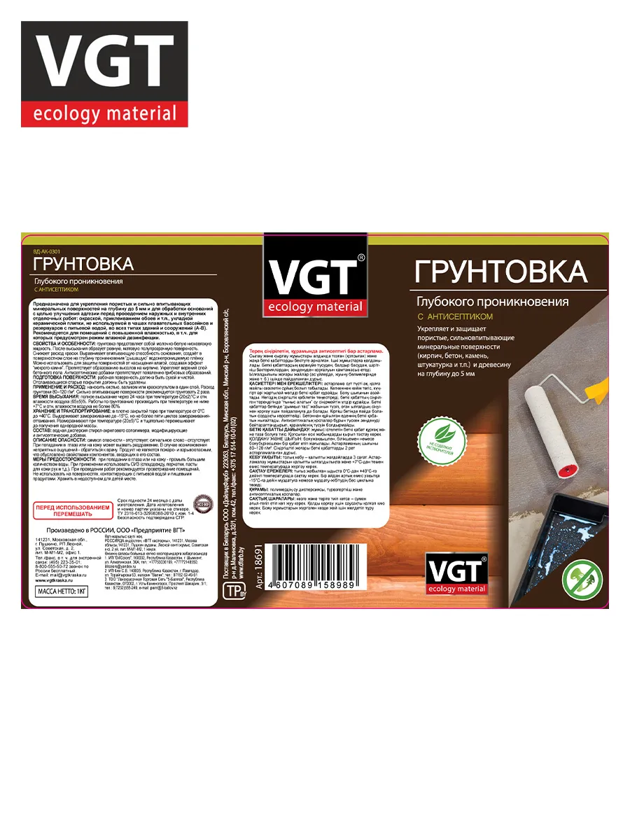 Грунтовка глубокого проникновения 1,0кг ВГТ ВД-АК-0301 с антисептиком