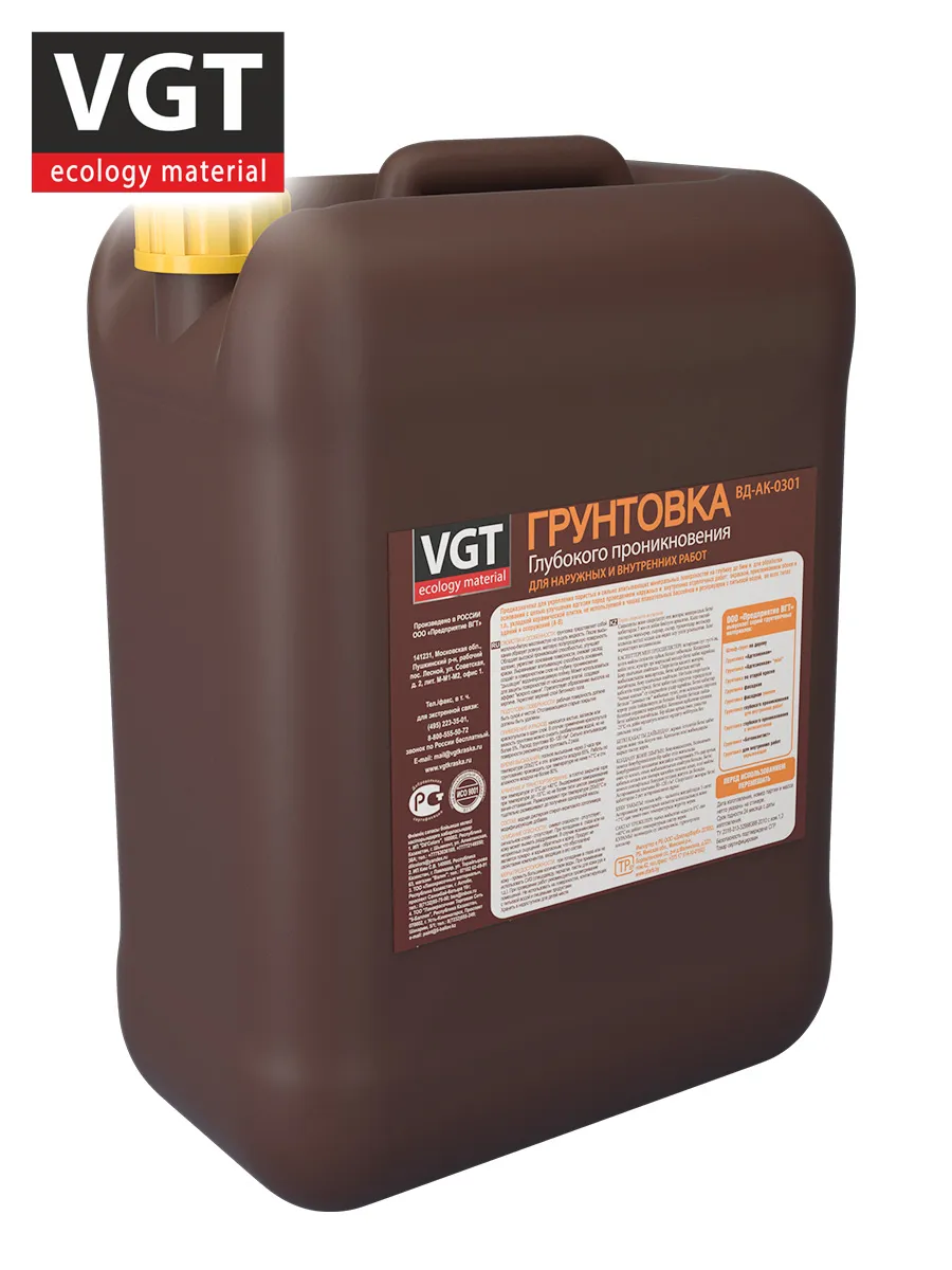 Грунтовка глубокого проникновения 5,0кг ВГТ ВД-АК-0301 для наружных/внутренних работ