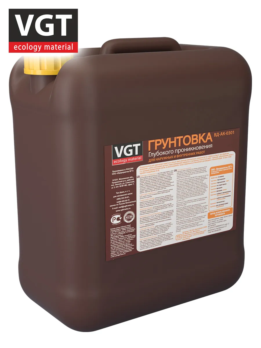Грунтовка глубокого проникновения 10,0кг ВГТ ВД-АК-0301 для наружных/внутренних работ