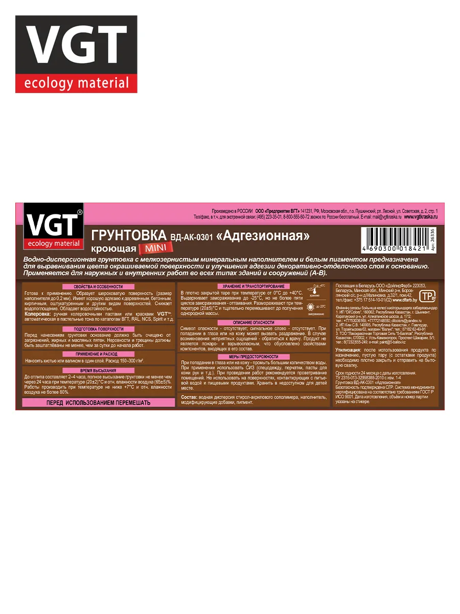 Грунтовка адгезионная кроющая мини 3,0кг ВГТ ВД-АК-0301