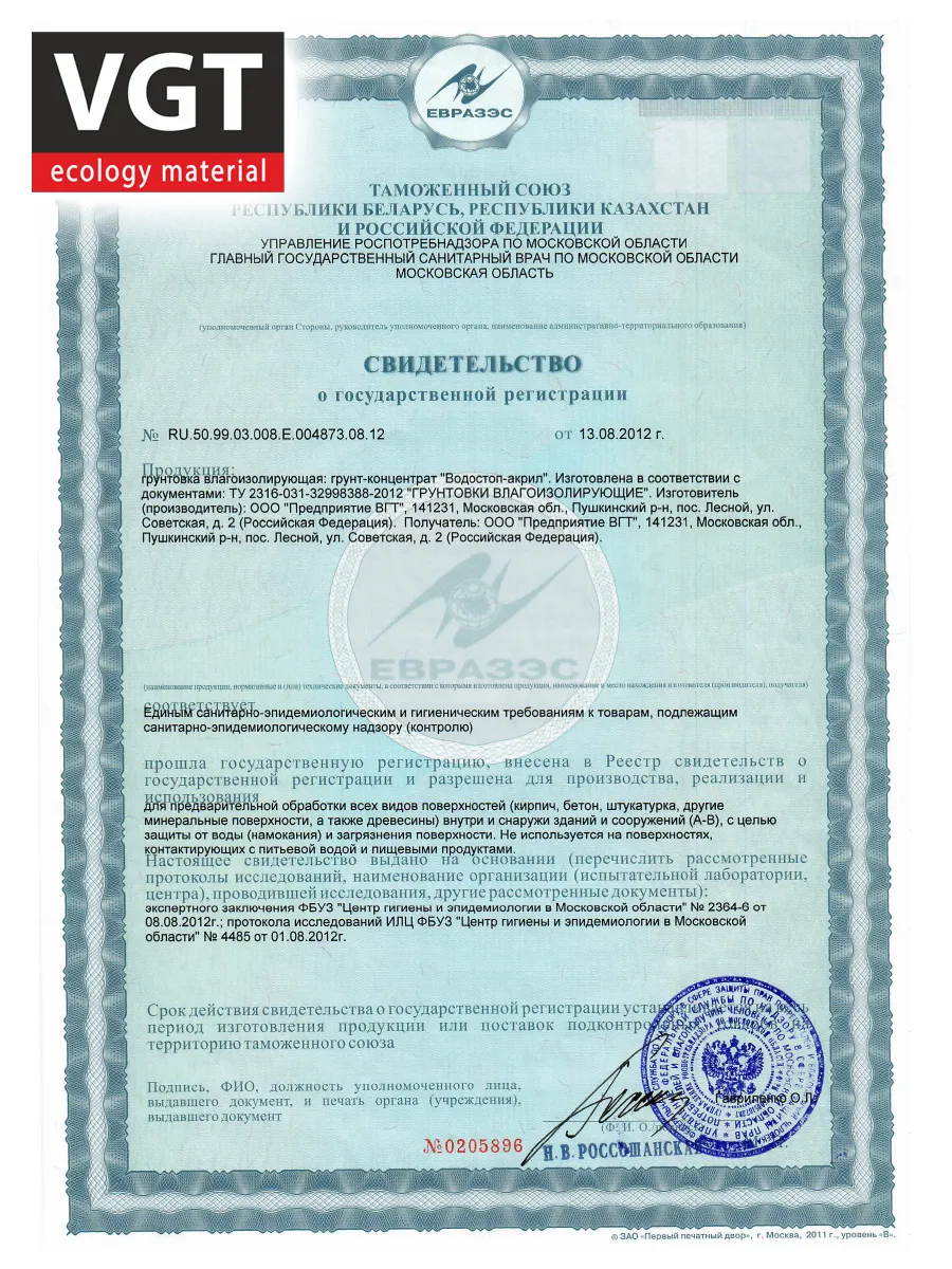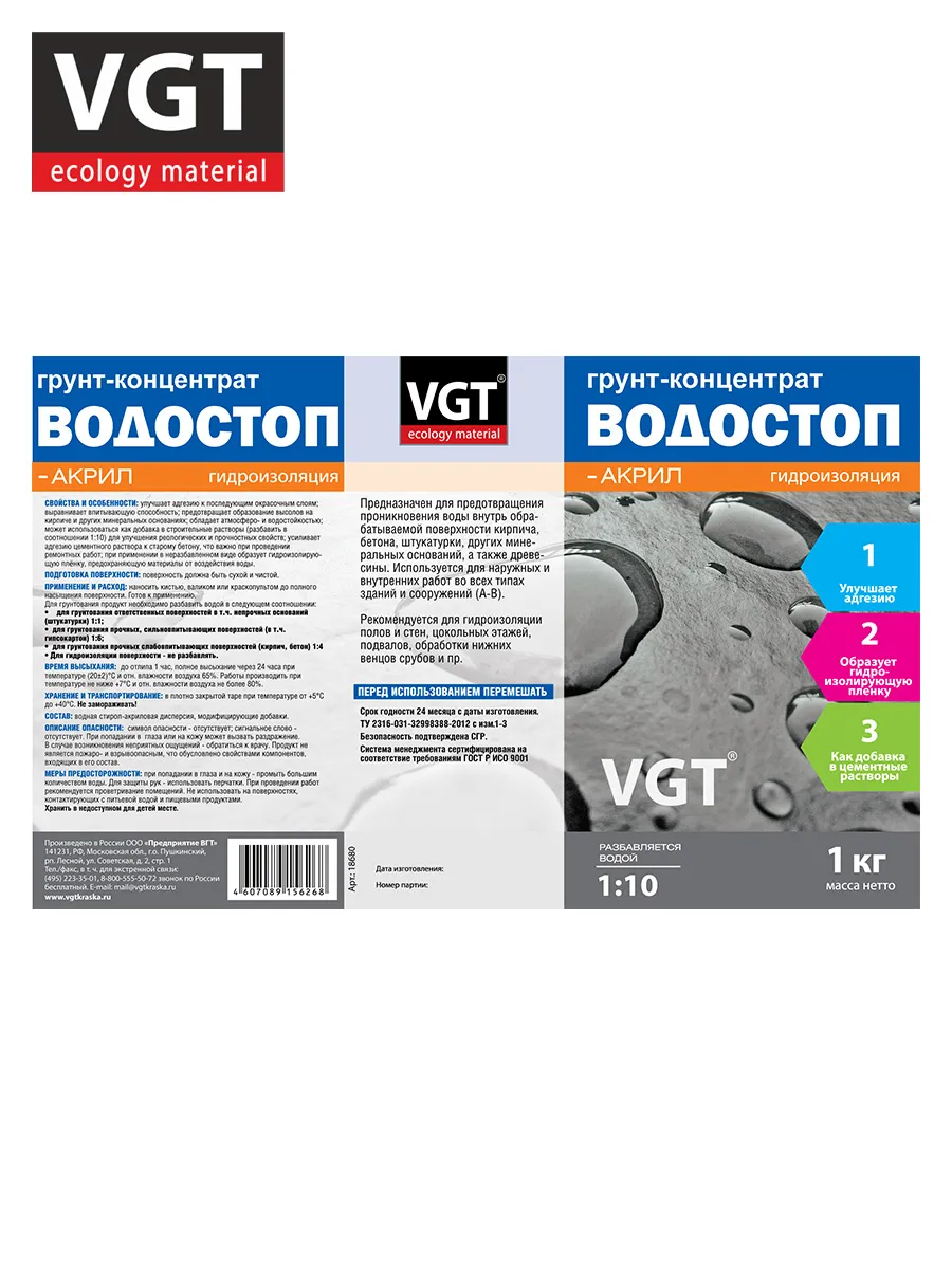 Грунтовка влагозащитная концентрат 1,0кг ВГТ Водостоп-акрил