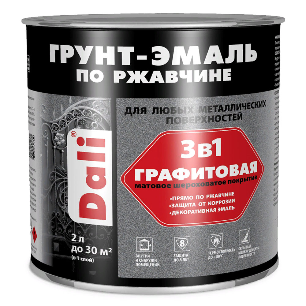 Грунт-эмаль по ржавчине графит 2,0л RAL7024 DALI