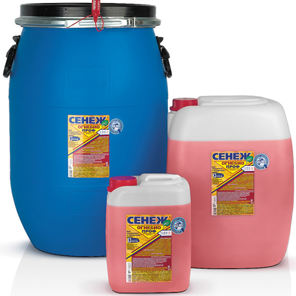 Средство Сенеж Огенибио Проф предназначено для комплексной защиты древесины от горения, воспламенения, распространения пламени, гниения, плесени, синевы и насекомых-древоточцев внутри помещений и на открытом воздухе (под навесом) в условиях гигроскопического и конденсационного увлажнения без контакта с грунтом, воздействия атмосферных осадков, почвенной влаги.