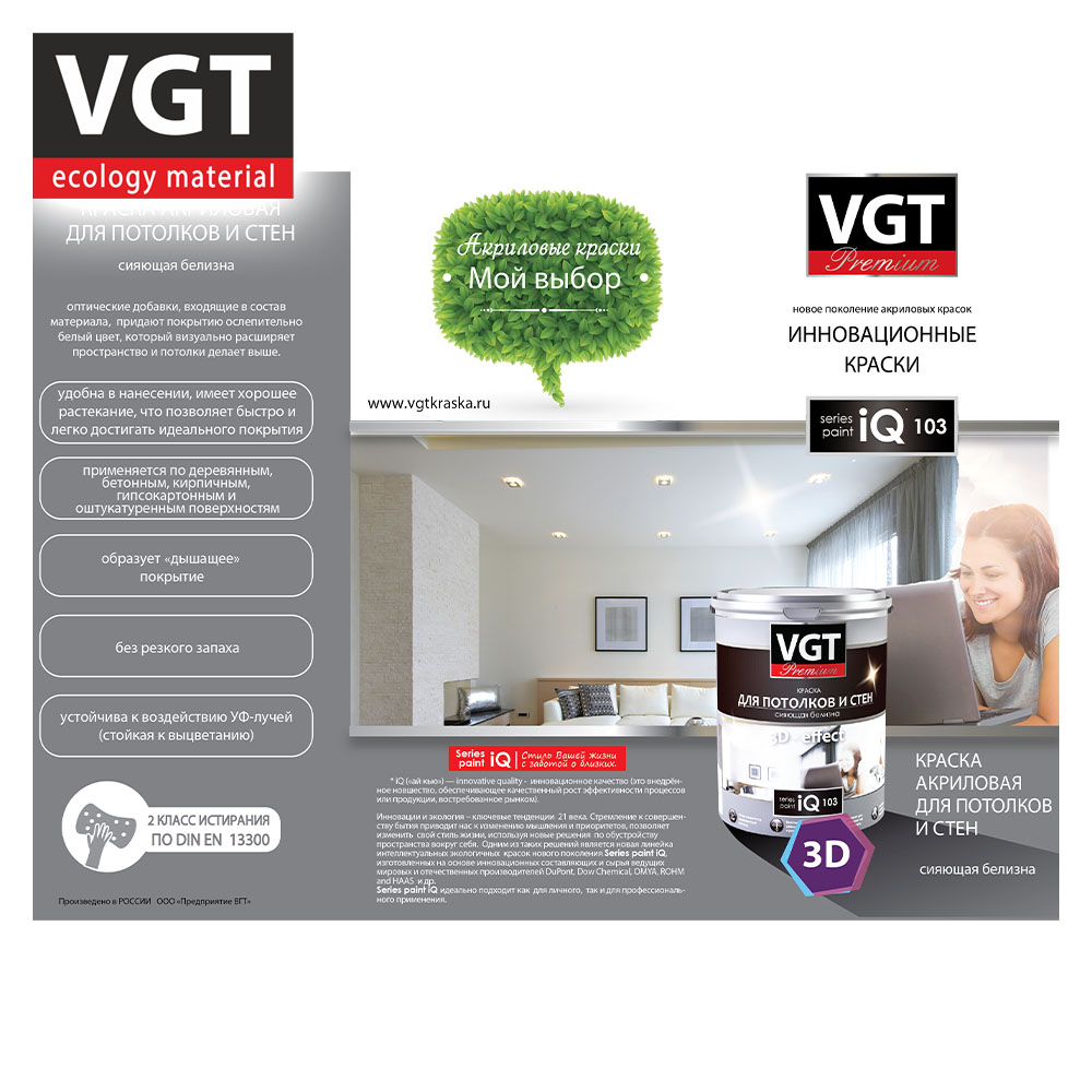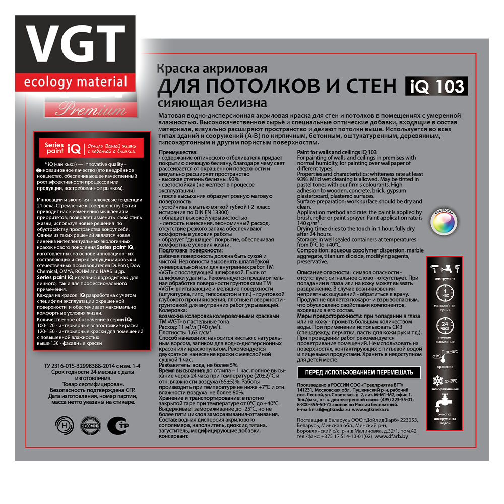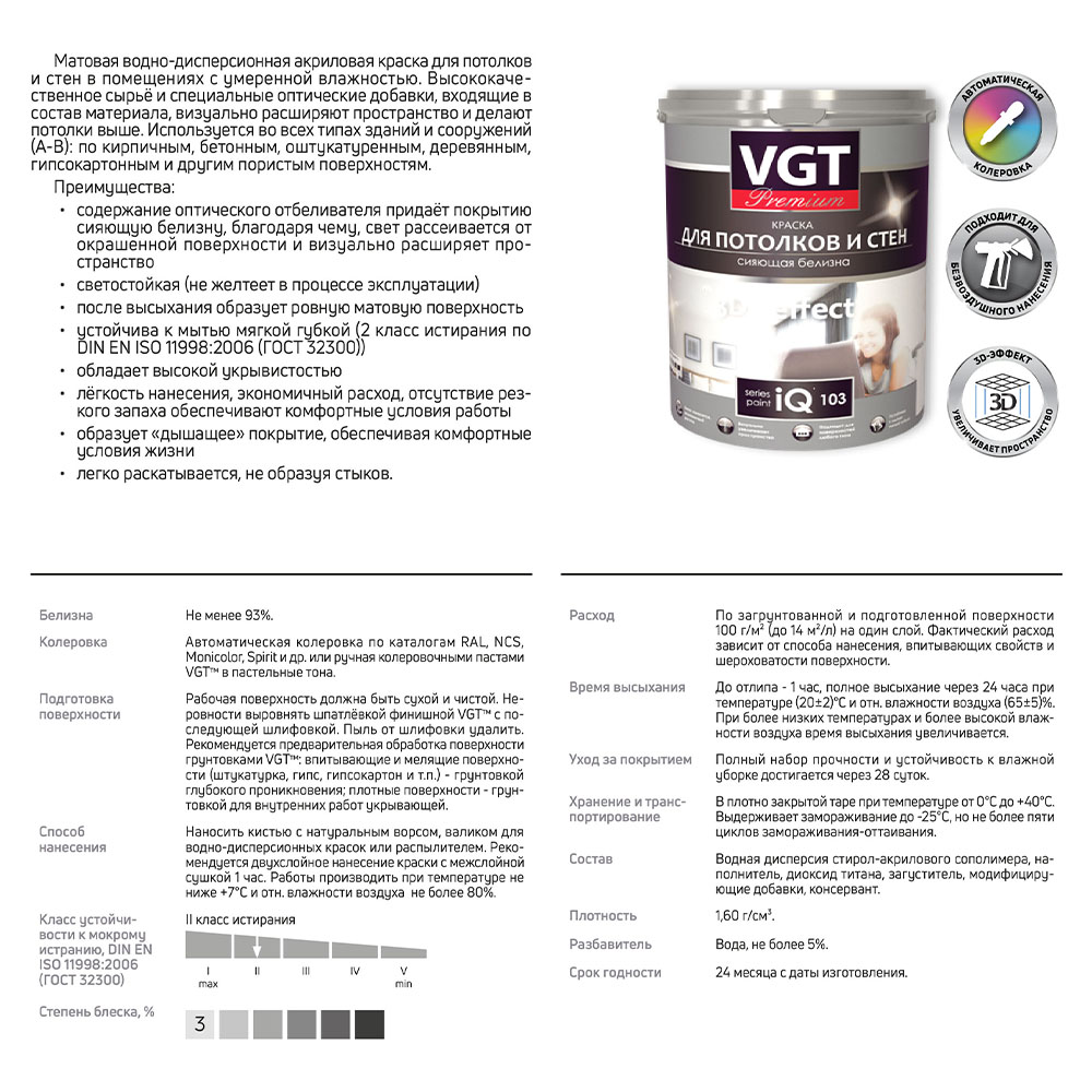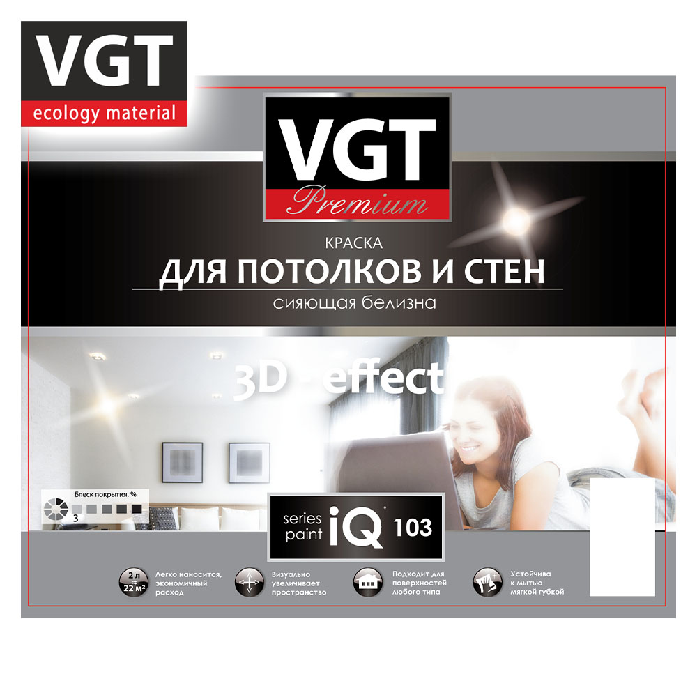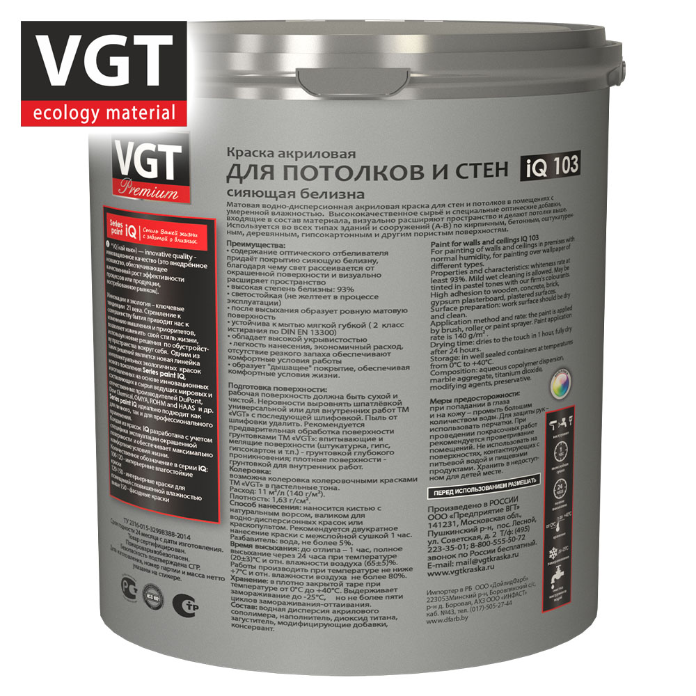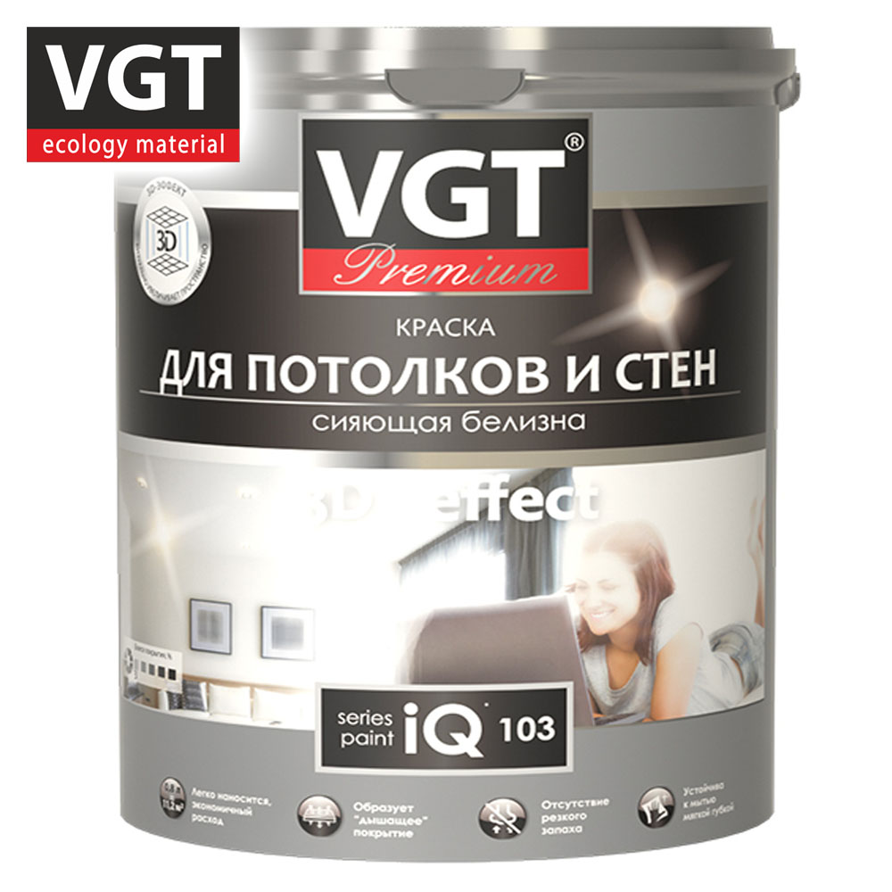 Краска ВД интерьерная 3,3кг ВГТ iQ103 Для потолков и стен, база A