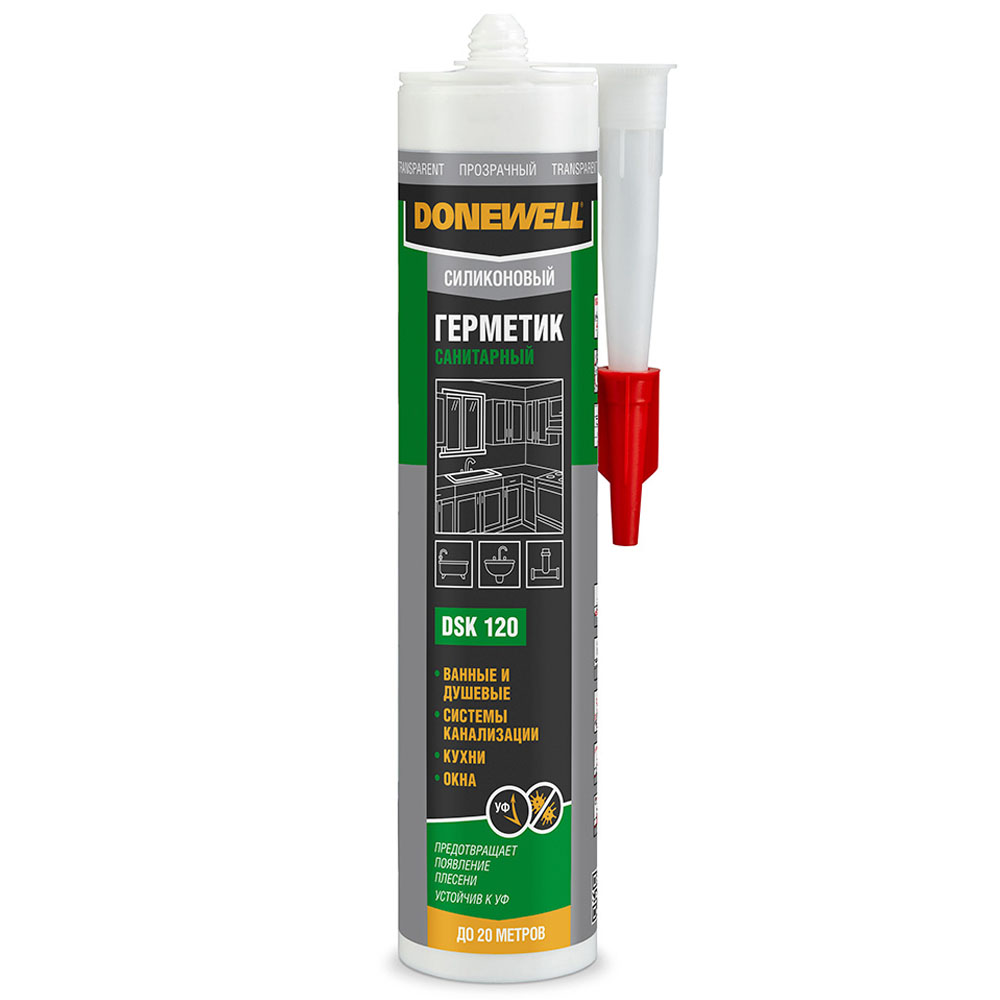 Высококачественный санитарный силиконовый герметик DONEWELL с системой отверждения ацетокси применяется в общих бытовых, ремонтных и строительных работах.