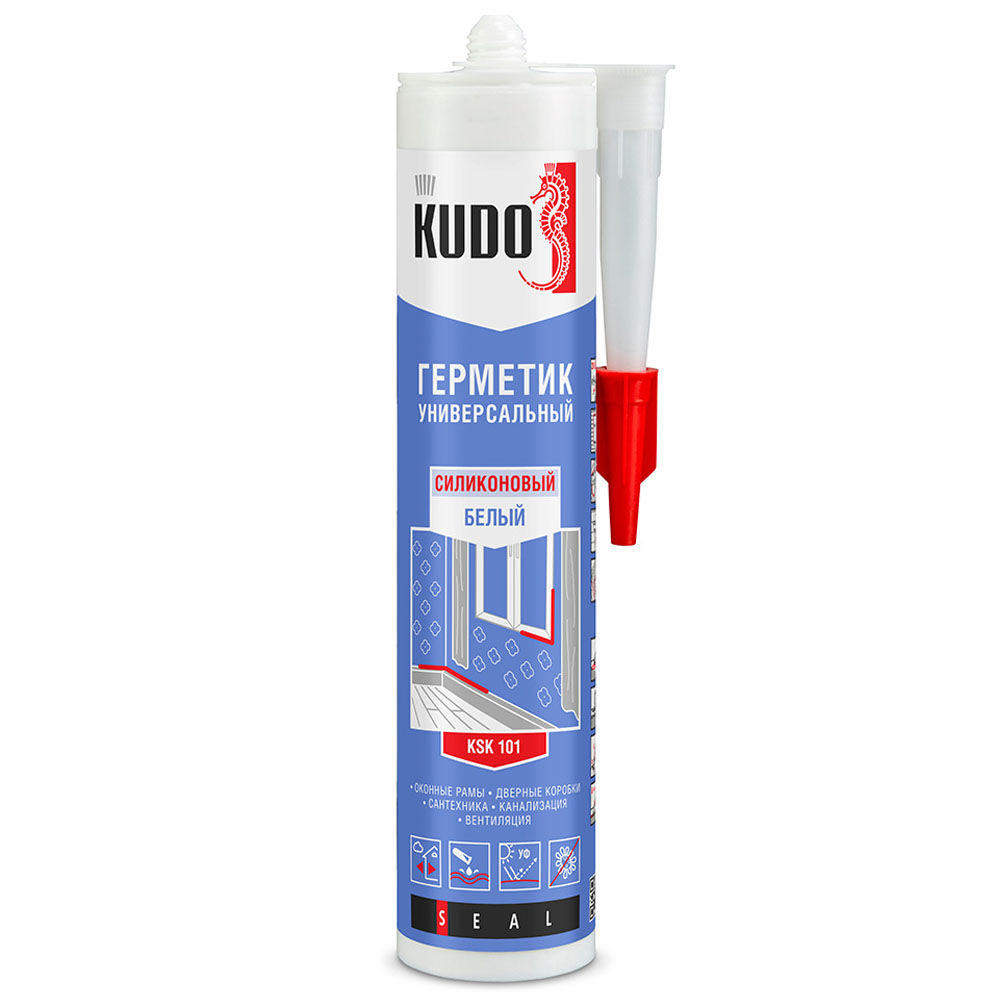Высококачественный универсальный силиконовый герметик KUDO с системой отверждения ацетокси применяется в общих бытовых, ремонтных и строительных работах. Предназначен для уплотнения, соединения и защиты непористых поверхностей от проникновения воздуха и влаги; для герметизации оконных рам, дверных коробок, кабельных каналов; герметизации стыков при монтаже сантехнического оборудования, систем кондиционирования воздуха; защиты полиуретановой монтажной пены от УФ-лучей.