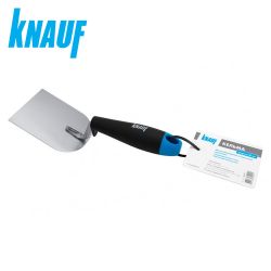 Кельма KNAUF — незаменимый помощник при проведении штукатурно-шпаклевочных работ. Инструмент подходит для размешивания шпаклевки в коробке, для нанесения на поверхность строительных смесей, клеевых растворов и даже кладки кирпича. Штукатурная кельма используется для работ внутри и снаружи помещения. Штукатурной лопаткой легко и удобно распределять и выравнивать растворы по обрабатываемой поверхности.