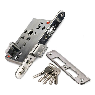 Врезной замок КалугаЗВ5 Россия со стандартным язычком прямоугольной формы, и наиболее удобным в обращении и ношении ключа цилиндровым механизмом. Снабженный надежным евроцилидром.