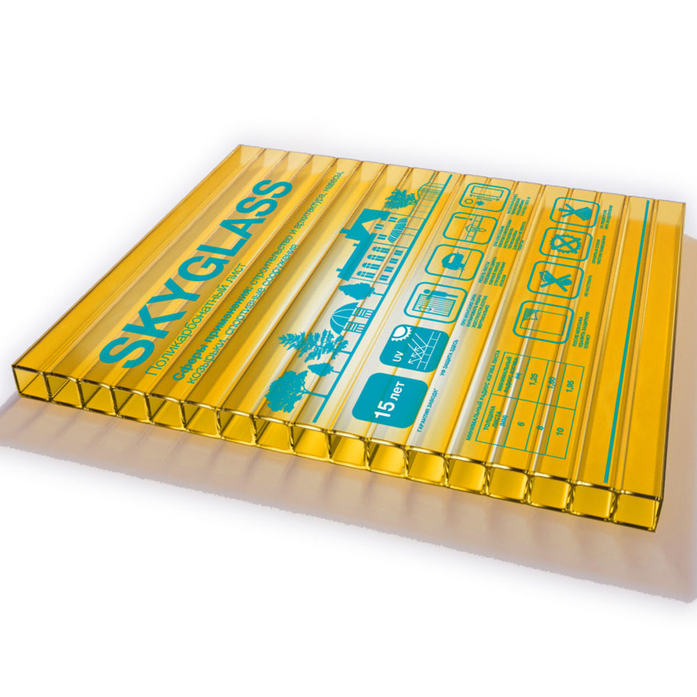 Поликарбонат 4мм желтый 2,1х 6м КИНПЛАСТ Skyglass (0,60кг/м2)