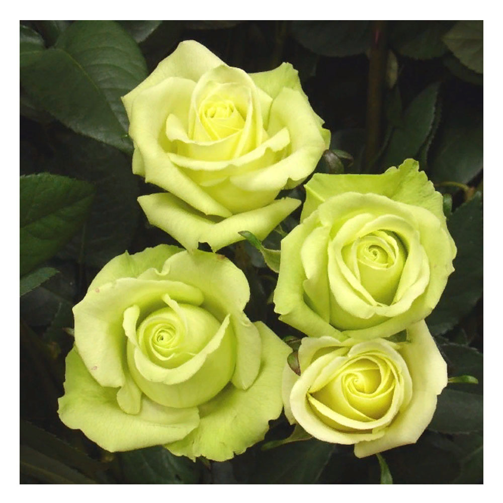 Meilland. Куст розы сорта Jade невысокий, прямой с прочными ровными стеблями, что делает ее пригодной для срезки. Эта роза отлично подходит для выращивания в открытом грунте, благодаря своей зимостойкости, а из-за высокой устойчивости к болезням розу Jade под силу выращивать даже начинающим садоводам. Цветки жёлтые с зеленцой, крупные, диаметром 12 см, густомахровые. Ароматные. Повторноцветущий. Кусты высотой 80-100 см.