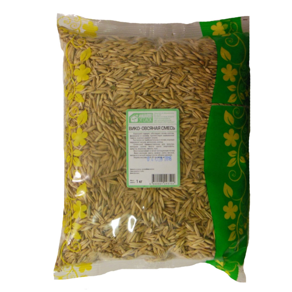Вико-овсяная смесь — однолетние бобово-злаковые растения, обладающие отличными качествами при использовании в виде зеленого удобрения, в качестве фитосанитарных культур и вики, как медоносного растения. Смесь выращивается на зелёную массу с последующей заделкой в почву, как основной источник экологичного органического удобрения. Вико-овсяная смесь как сидерат из бобовой и злаковой культуры обогащает почву азотом, фосфором и калием, препятствует вымыванию гумуса, оберегает от выветривания, хорошо рыхлит и структурирует землю. Растения нетребовательны к почве, хорошо переносят засуху, затенение, холод (выдерживают заморозки до 5-7°C). Они являются отличными предшественниками для культур, которым нужно много азота (картофель, капуста, морковь, свекла, лук), восстанавливают и лечат истощенную почву. Вико-овсяная смесь незаменима для небольших огородных участков с нарушенным севооборотом и правилами чередования культур, заменяет 50 кг навоза на 20 м2.