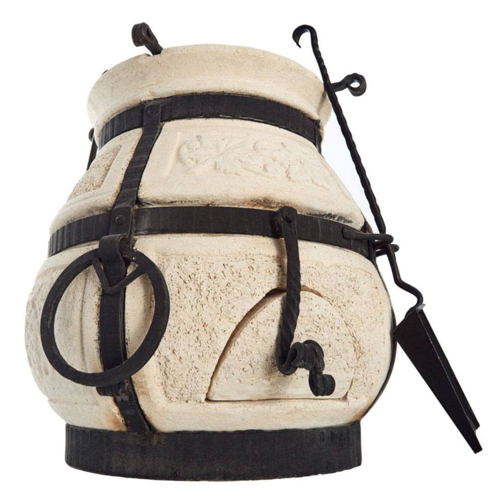 Переносной тандыр Кочевник – незаменимый помощник в приготовлении свежей, вкусной еды на свежем воздухе. Мало того, этот небольшой глиняный сосуд поможет согреться в холодную погоду на даче. С древних времён тандыр был верным помощником и спутником кочевых народов. Его плавные округлые формы – результат 5 тысяч лет эволюции. Изящную глиняную амфору оберегают в пути кованные стальные полоски.