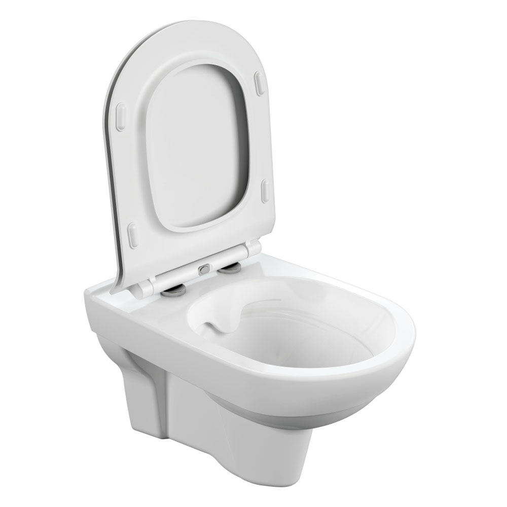 Безободковый подвесной унитаз с ультратонким, антибактериальным сиденьем с плавным закрыванием и легкосъемным механизмом